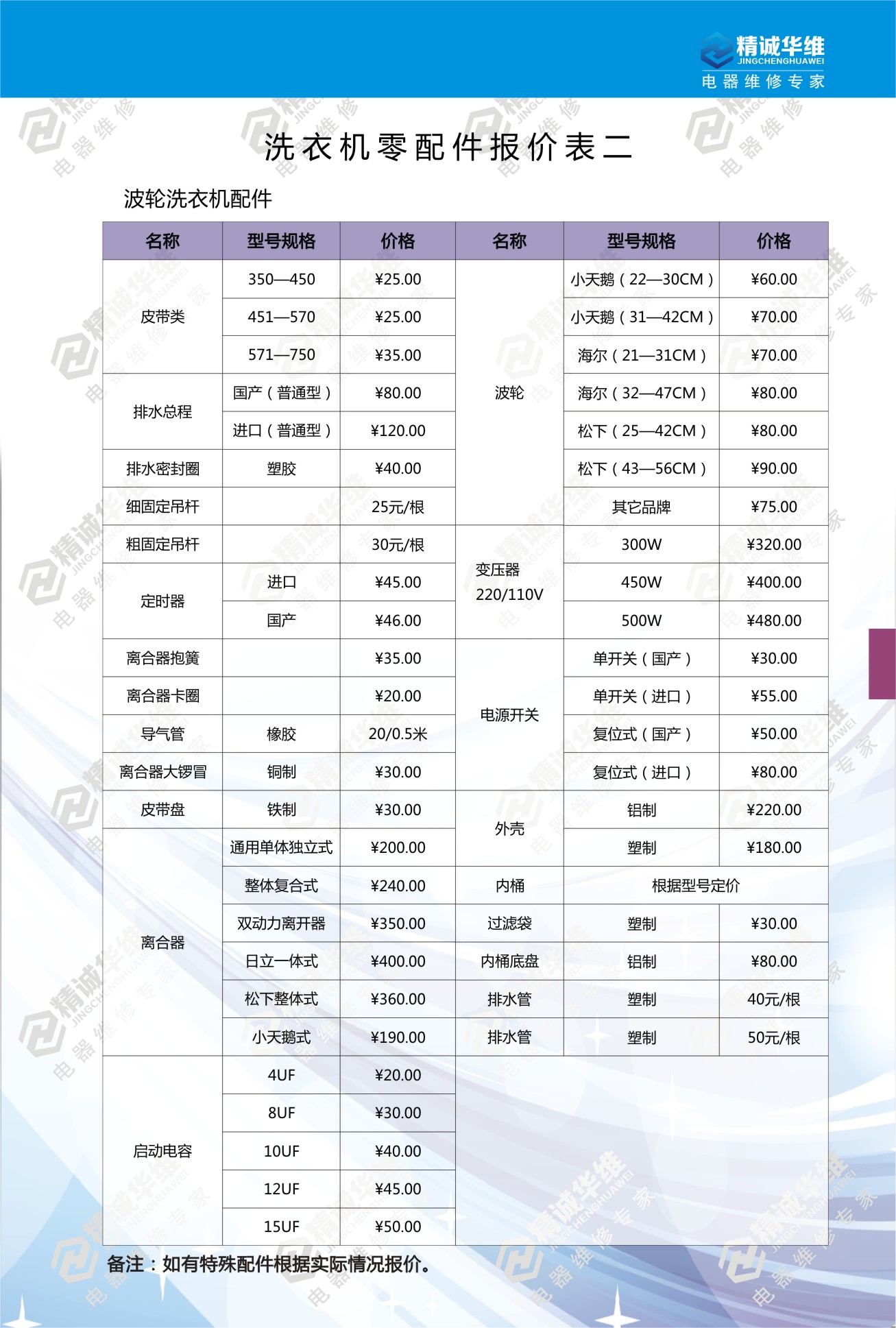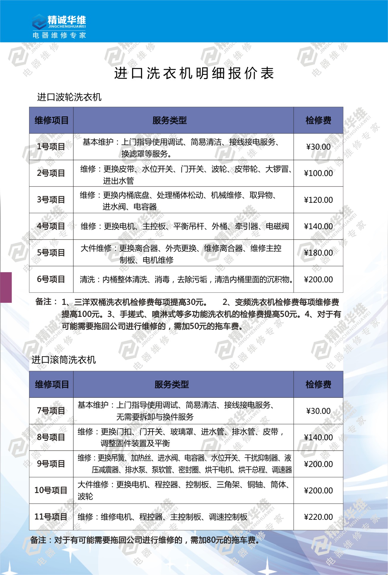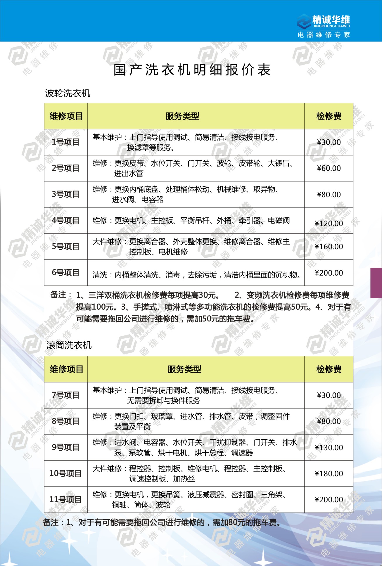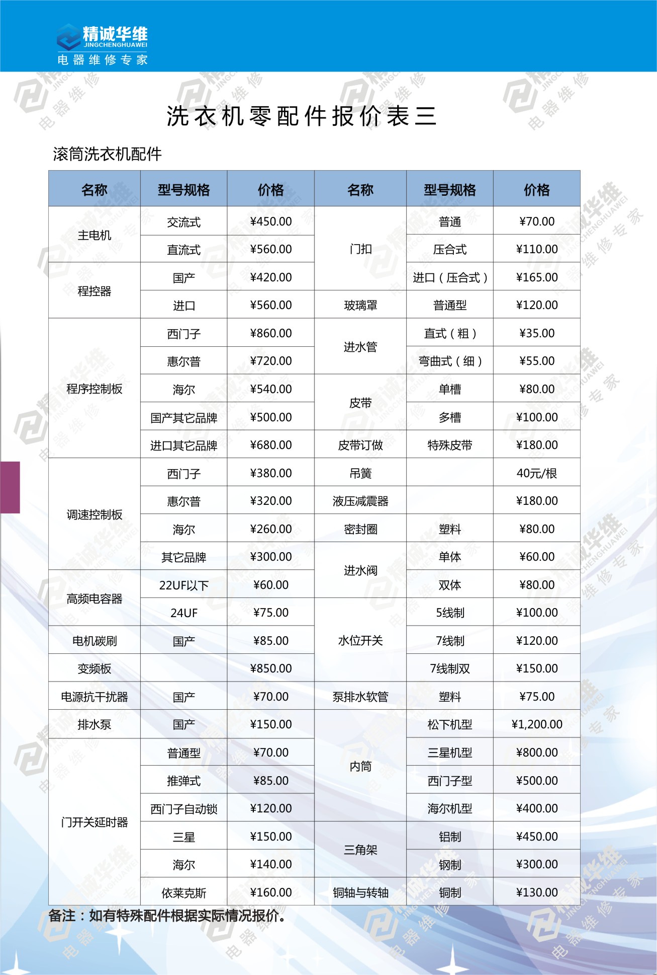 洗衣機維修報價